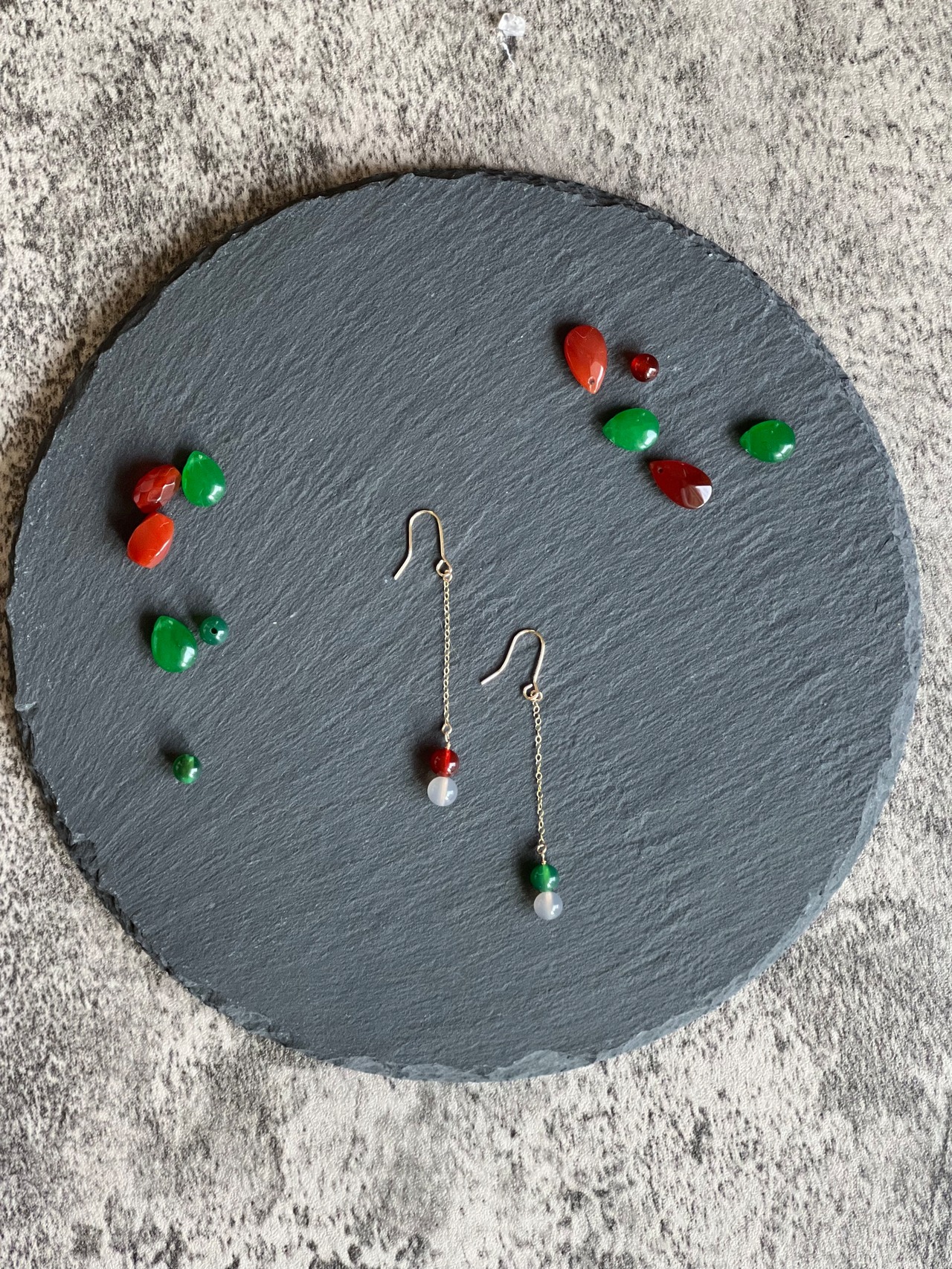【product name】二色の瑪瑙のアシンメトリーピアス