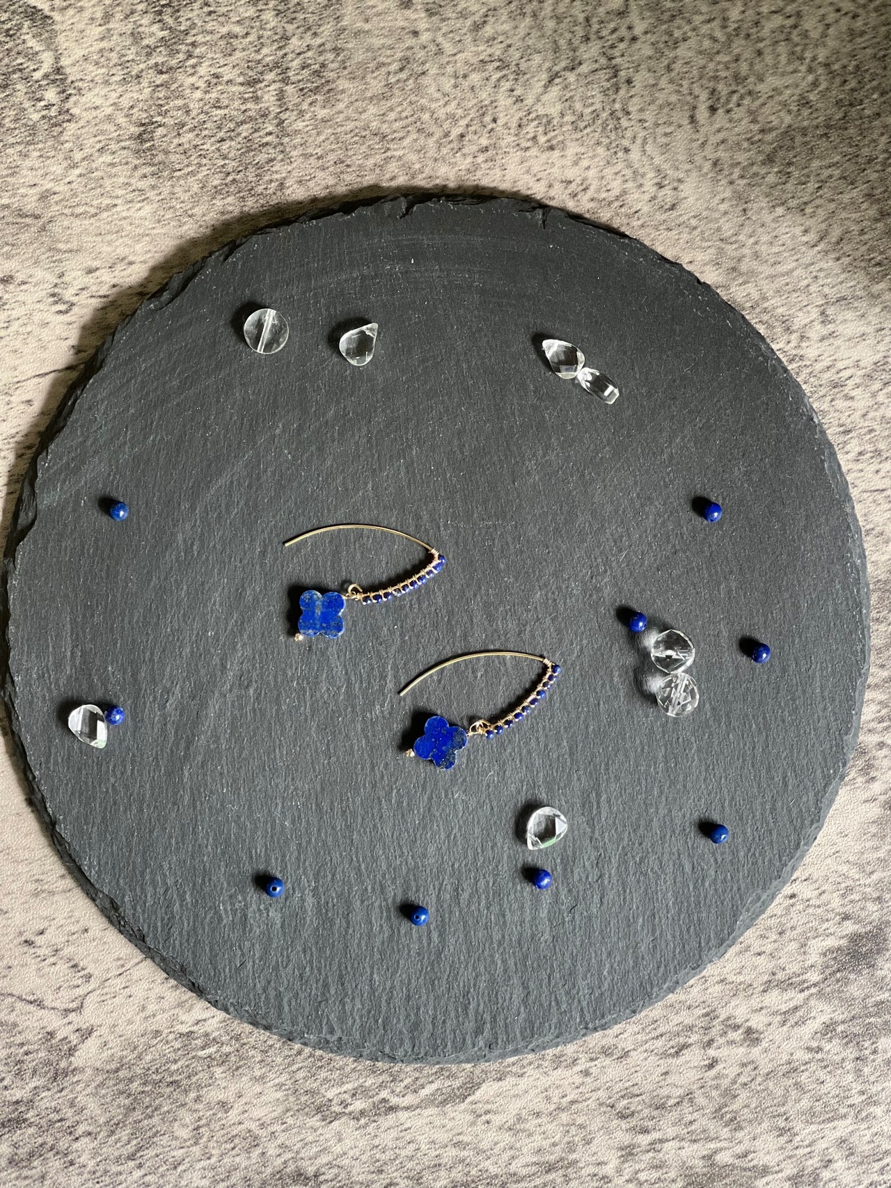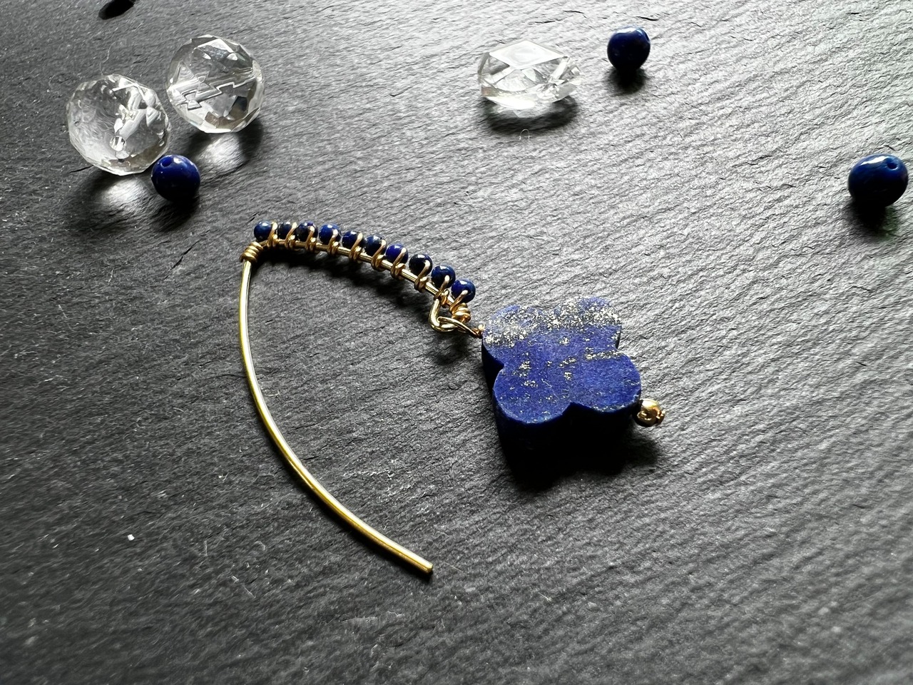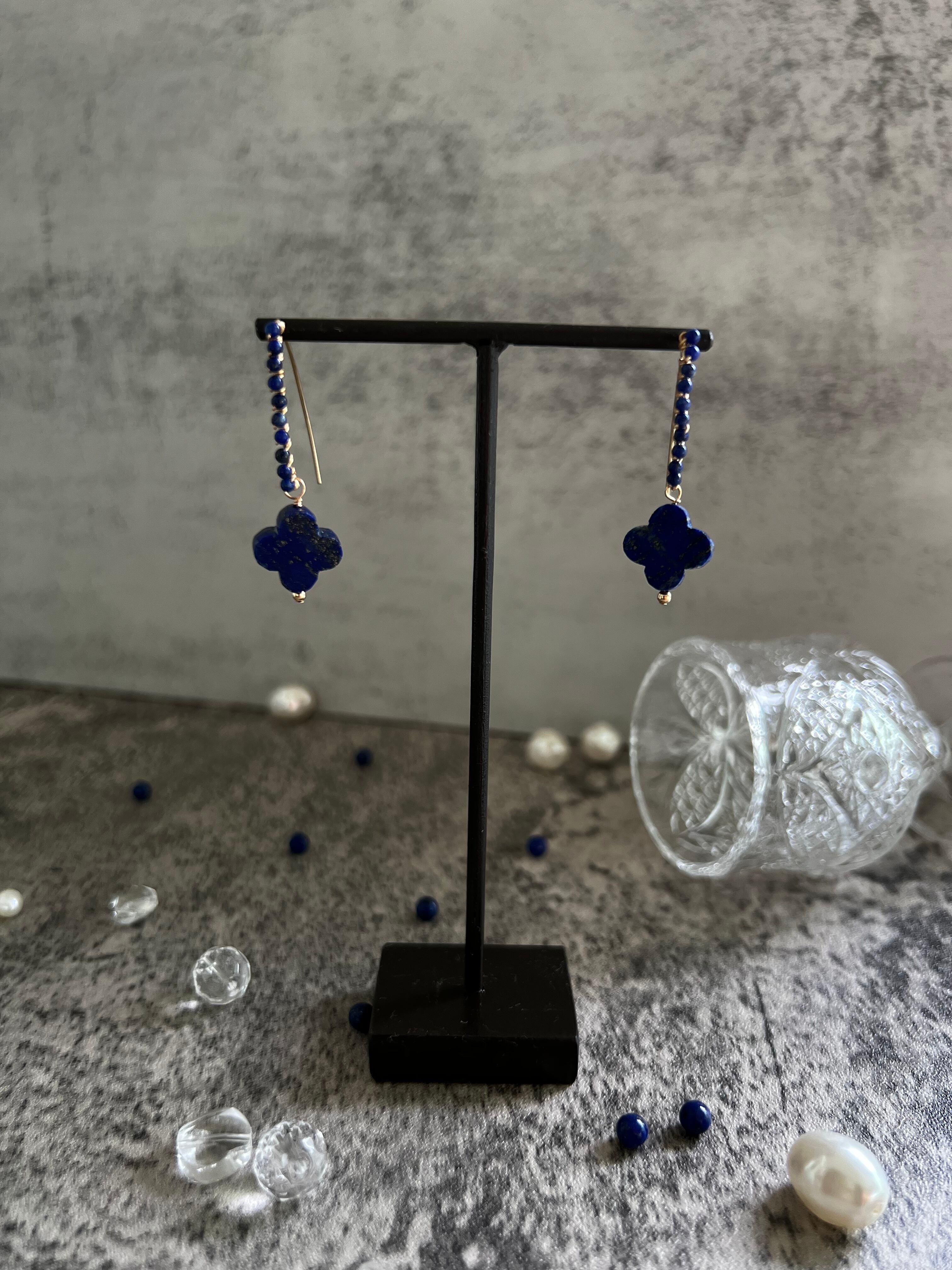 14kgf 四つ葉のラピスラズリのピアス