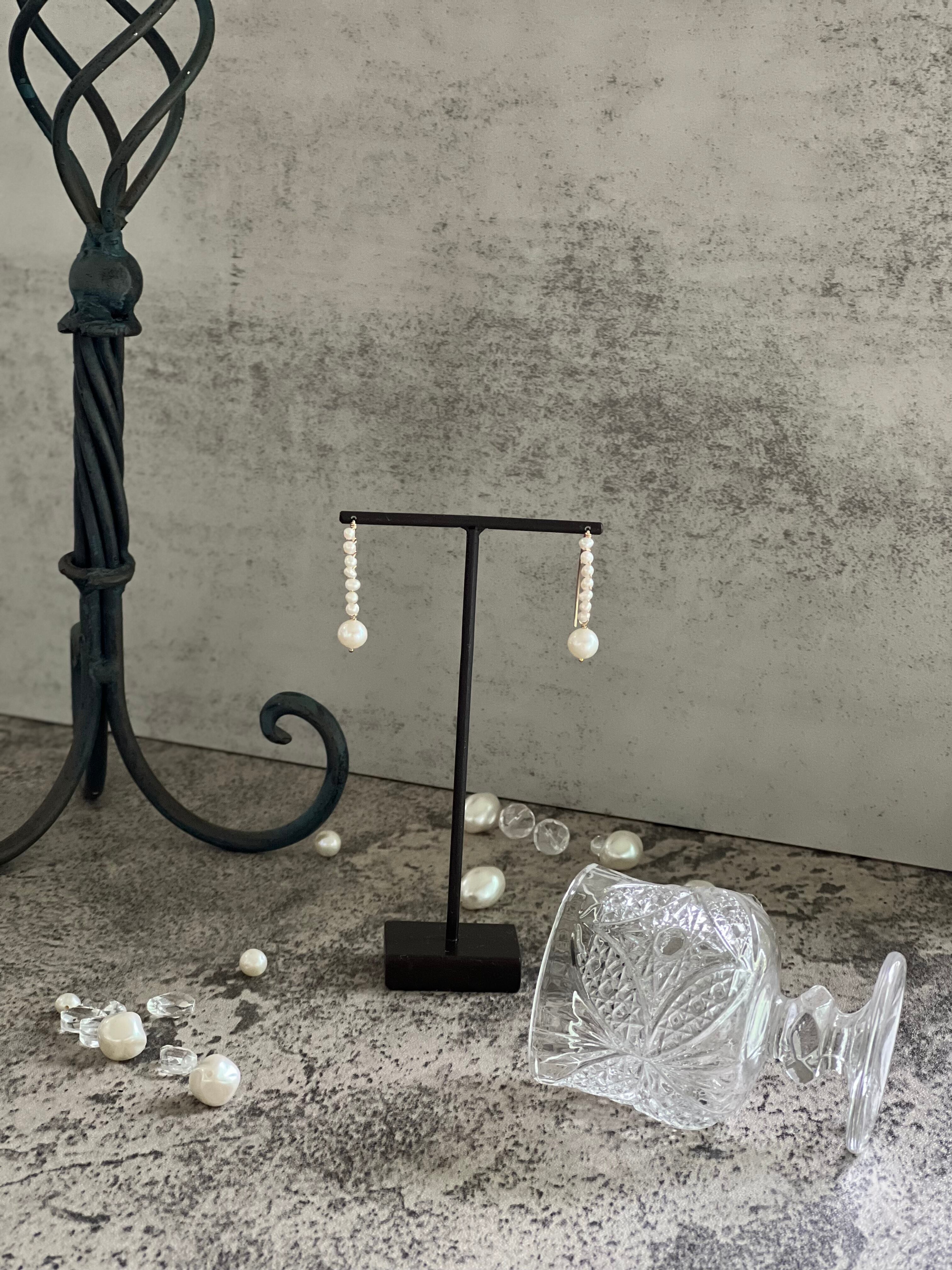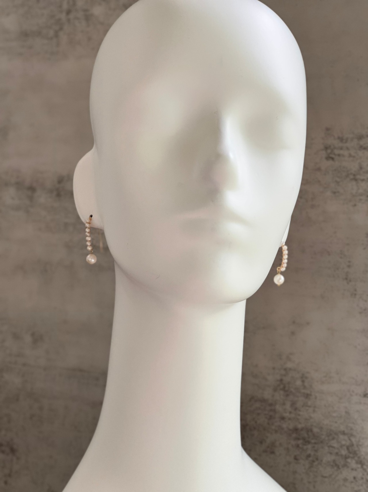 【product name】 淡水パールをワイヤーラッピングしたV字ピアス 14kgf